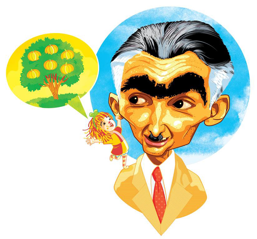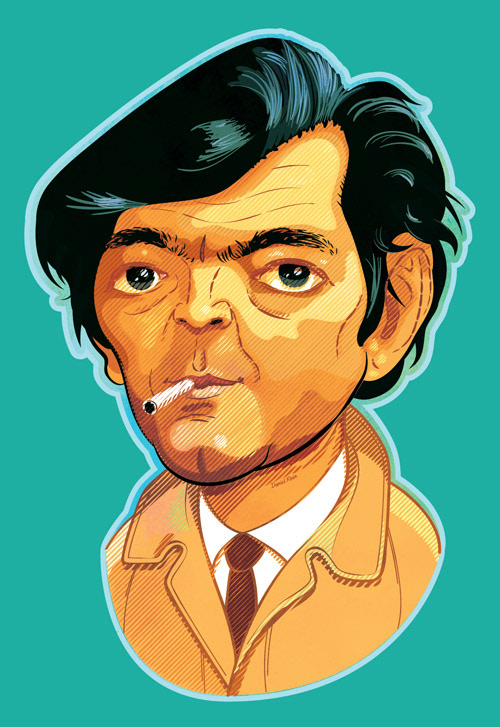 Caricaturas de Julio Cortázar e Monteiro Lobato.
